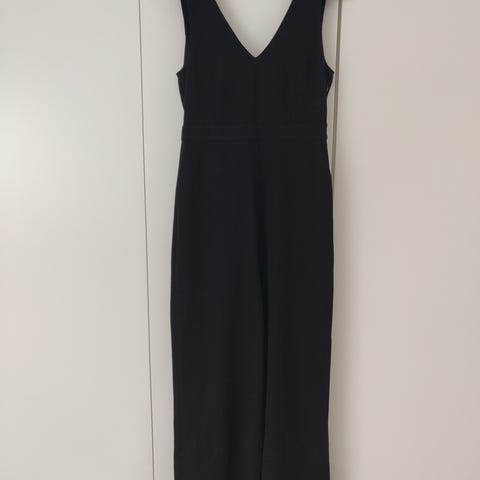 Gestuz Lilva jumpsuit sort buksedragt i størrelse 38. Buksedragten har en dyb V-udskæring både for/ bag og bred benvidde. Materialet er polyester, viskose og elastan, dragten giver en elegant og enkel silhuet, og kan både bruges til hverdag og fest. Ser ud som ny,