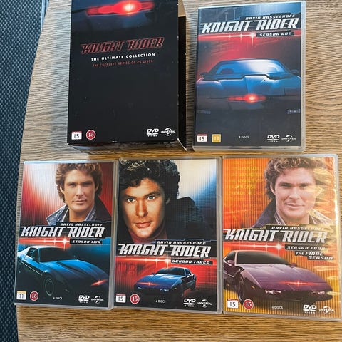 Knight Rider Season one & two. Her får du omkring 38 timers spænding med fart, på 14 dvd'er. Med David Hasselhoff - Edward Mulhare - Patricia McPherson - Rebecca Holden - William Daniels mfl. DVD