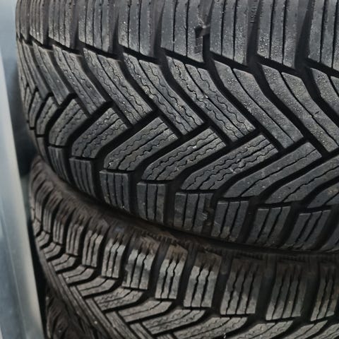 Flotte ældre vinterdæk med godt mønster. Fælge meget rustne men alle 4 hjul holder luften.