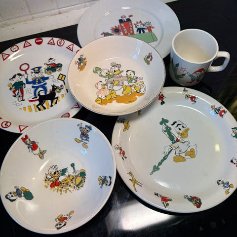 Børn stel , flade og dybe i sæt nogen med kop eller krus , mange fra Norge, også andre kendte som smølfer, Disney, og mange andre, samt ældre fra 40 erne ,50 erne ,60 erne , 70 , erner og nyere