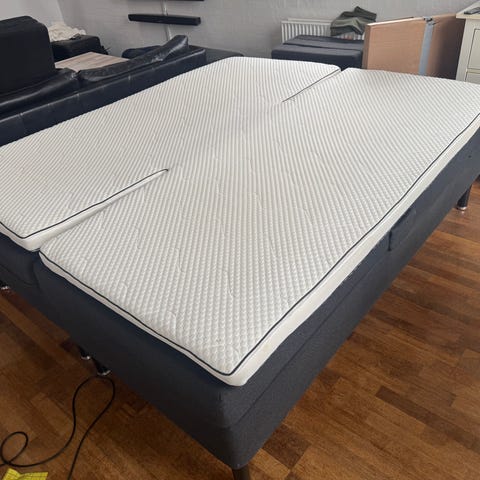 På grund af fejlkøb, sælges en helt ny box elevations seng med målene 180x200 cm, bestående af 2 elevation enkeltsenge 90x200 cm samt med u-split Bamboo latex topmadras. Sengen har en sort ramme og inkluderer en hvid topmadras med quiltet overflade. Den elektriske funktion styres via en medfølgende trådløs fjernbetjening, som gør det muligt at justere sengens position for øget komfort. Der er indbygget orienteringslys, så man om natten kan undgå at forstyrre sin partner hvis man skal op.