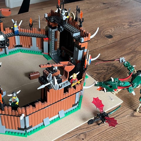 * Det meste af 7019 Vikingeborg mod dragen fafnir (primære mangler er den ene langside af fortet samt de grønne plader under selve siderne og dragens vinger)