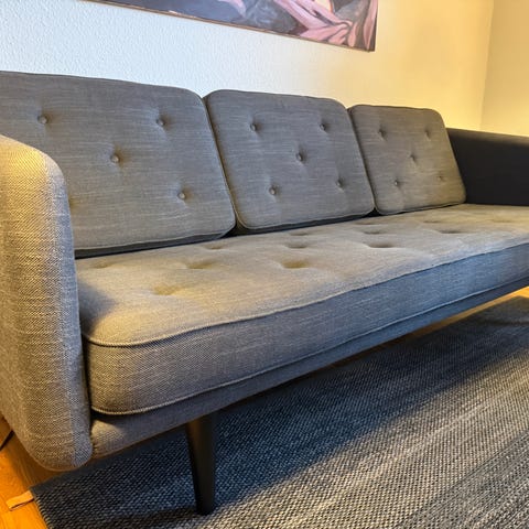 3 pers. sofa fra Børge Mogensen, model Fredericia 1911. Materiale: lysegrå uld med ben i egetræ