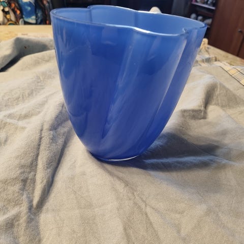 Blå vase H ca 16cm: 250kr