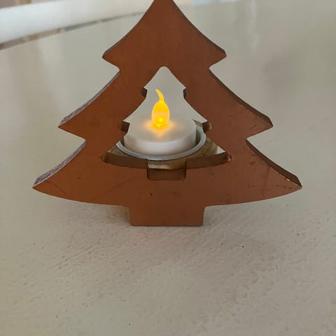 Lysestage i træ m. Led fyrfadslys
