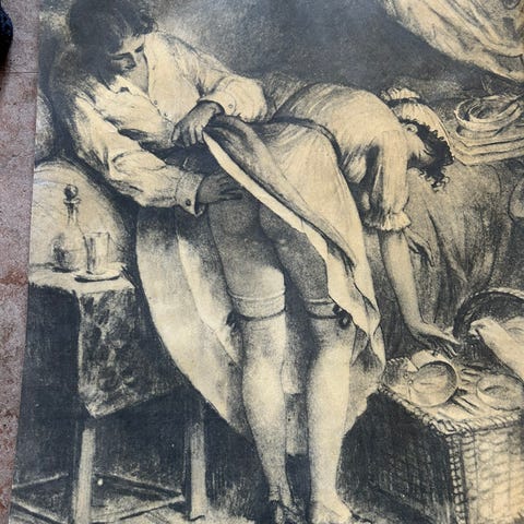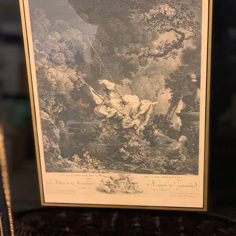 Billedet omgivet af sort passepartout. Rammens ydre dimensioner: 52x72 cm.