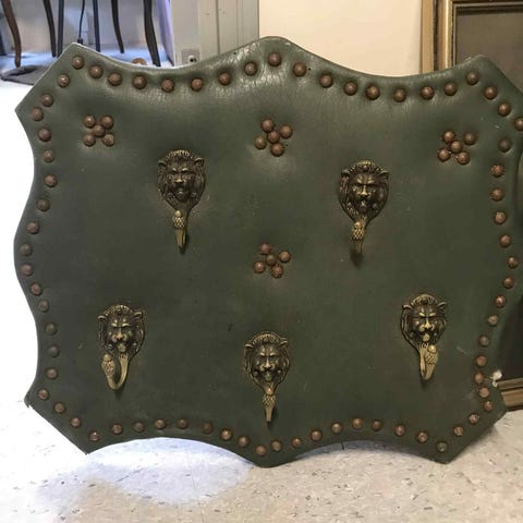 Fin og velholdt knagerække med porcelænsskilte til Viskestykke, Haandklæde, Knivklæde og Glasklæde.