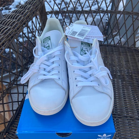 Adidas Stan Smith sneakers er en ikonisk tennissko, der oprindeligt blev lanceret af Adidas i 1965. Den er kendt for sit minimalistiske design med en glat læderoverdel og tre rækker perforeringer i stedet for de traditionelle tre striber, som man ser på mange andre Adidas-sko.