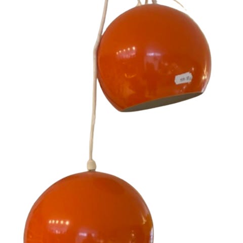 2 stk fede orange retro lamper med glasskærm i orange farve , står uden skader