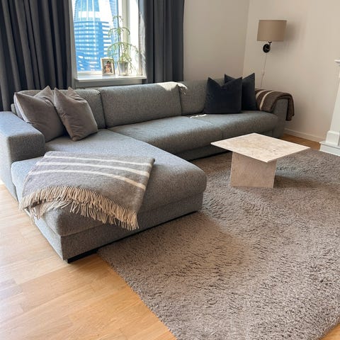- Dybde: 184 cm (ved chaiselonger), 103 cm (det korte stykke)