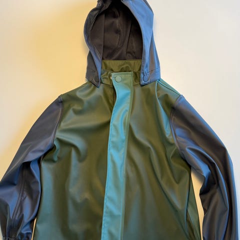 Rigtig sødt sæt regntøj fra byLindgren. Blomstermønster og sløjfe på hætten samt fine og praktiske detaljer. Som nyt, dog med navn skrevet i mærket. Kan eventuelt dækkes med et mærkat.