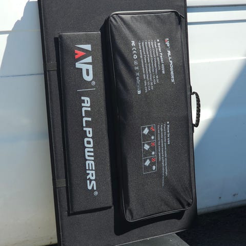 50 watt solpanel, samt ny laderegulator (10 amp). Kan bl.a. bruges til LED lys tlf opladning mm.