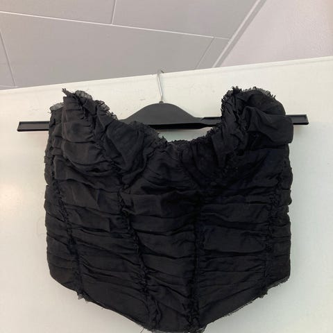Corsage/top med bøjler i sort fløjsvelour med similisten og blondekant og justerbare stropper.