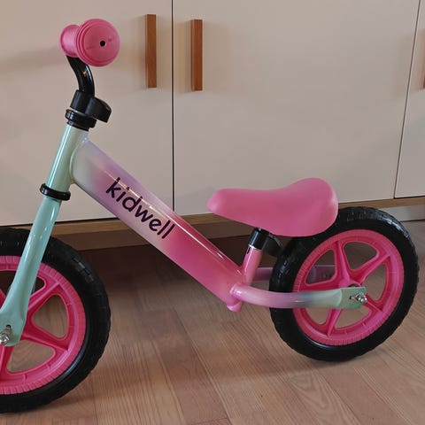 HELT ny Rebel Kidz løbecykel købt i Holland. Jeg kunne ikke stå for den, så jeg kom til at købe den. Problemet er, at den desværre er for lille til mig.