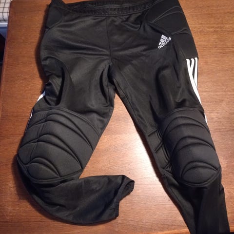 Adidas Goalkeeper bukser i sort farve med polstring på knæ og hofter. Bukserne har elastisk talje og er designet til at give beskyttelse under målmandstræning eller kampe. Materialet er slidstærkt og velegnet til sportsbrug.