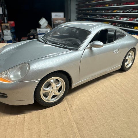 Universal Hobbies Porsche 911 Classic modelbil i skala 1:18. Farve: sølv. Materiale: metal og plastik. Detaljeret miniaturebil med realistisk design, inklusive interiør og eksteriør. Egnet til samling eller udstilling.