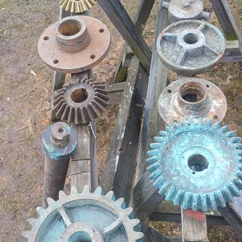 Fiskehjul ca, 100 år gl., Antikt fiskehjul i messing