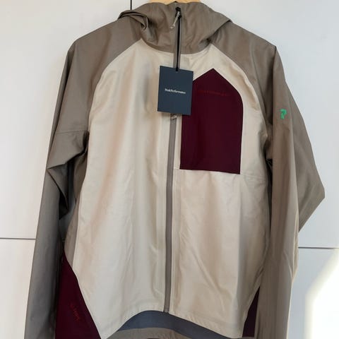 Sælger denne regnjakke fra Peak performance i lyserød/blå.