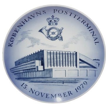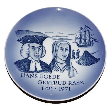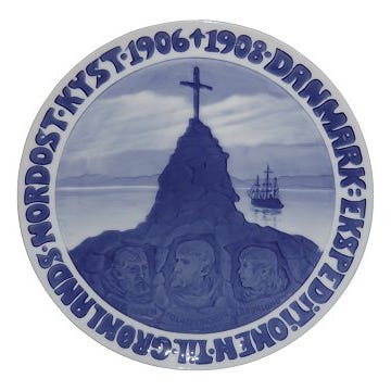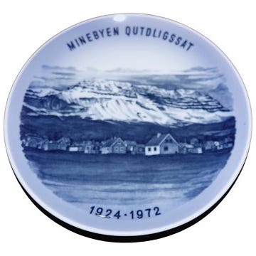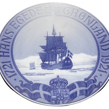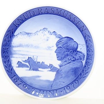 Royal Copenhagen Grønland platte, Top of the World Thule Air Base Greenland 1979. Dekoreret med en Inuit sejlende foran et isbjerg.
