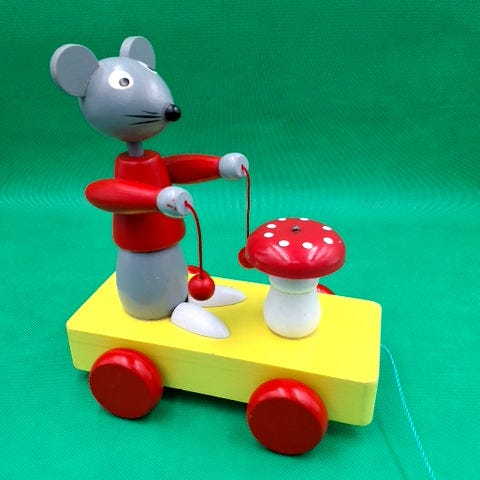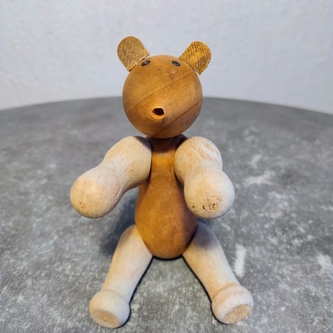 Vintage trælegetøj, Gammel trækmus i træ. Længde 10,5 cm.