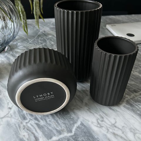 Lyngbyvaserne i sort keramik. Klassiske vaser i enkelt, stilrent design.