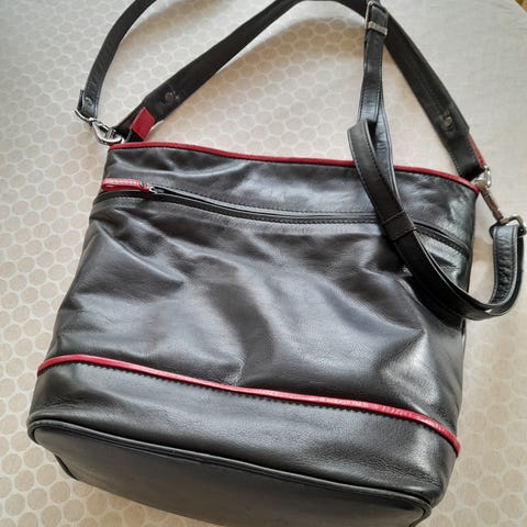 Juletaske... Skuldertaske i ren bomuld med knaplukning samt lynlås lukning.