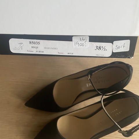 1 par Notabene sorte stiletter, se link. Aldrig brugt. Nypris 1950,-
