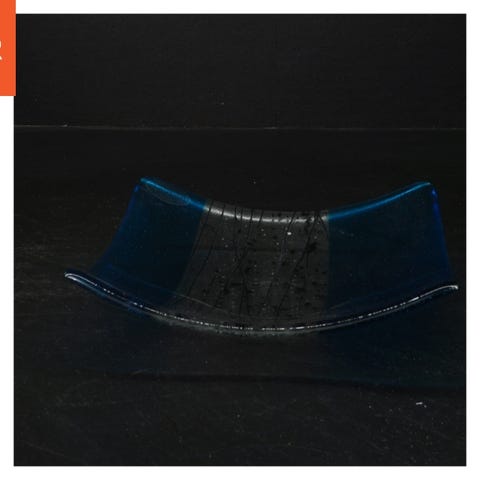 Dette er et dekorativt firkantet glasfad med dimensionerne 23x23 cm. Fadet er fremstillet af glas og har et kunstnerisk design med en blanding af mange farver, herunder blå, grøn, gul, lyserød, og sort, der er arrangeret i et uregelmæssigt abstrakt mønster. Det har en lav profil og er perfekt til dekorative formål eller som et farverigt midtpunkt på bordet.