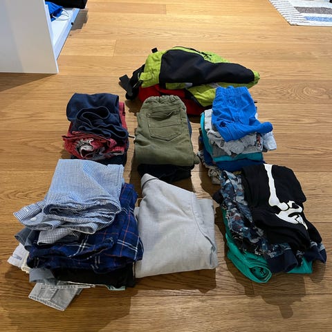 I alt 37 stykker tøj, så under 10 kr. per stk.!