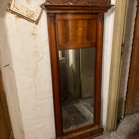 Fint gammelt svensk spejl med rum til eks. stearinlys eller lignende