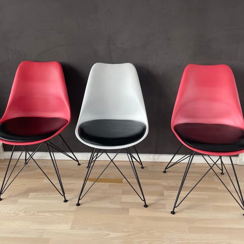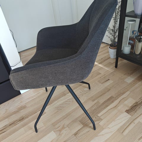 4 stk velholdte og rigtig pæne stole fra LEXPO, med kraftigt antracit gråt møbelstof. Stellet er et sort metal, som kan dreje 180°