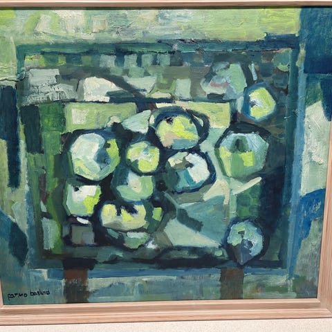 Parmo Baslund malede ofte naturalistiske landskaber, abstrakte kompositioner, med mere