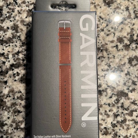 Garmin læderrem samt gummi rem i sandfarvet/limestone