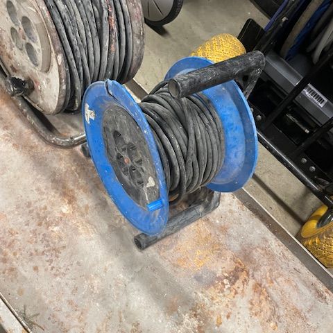 Kabeltrommel, som ny, brugt 1 gang. 25 meter med 4 udtræk.