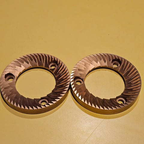 64mm burrs / knive som oprindeligt hører til en Mazzer Philos i rustfrit stål