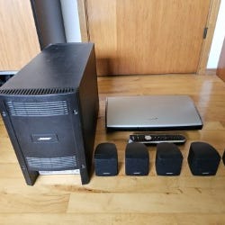 Medieafspiller, Bose, Media Center Model AV 18, Stor Højtæller: PS 3-2-1 Power Speaker System, 5 små sorte doble højtæller, fjernbet. bog mm. mulighed for levering