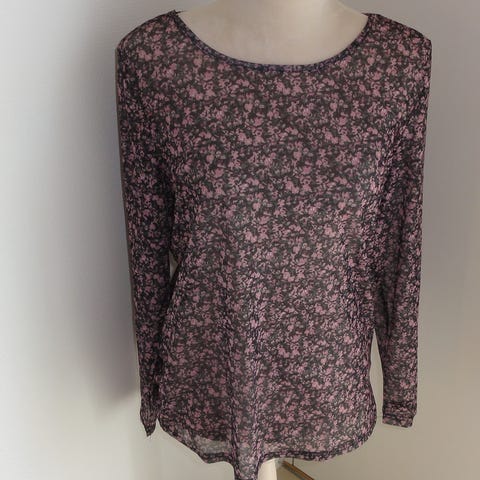 Fin ribstrikket bluse i striber af grøn, rosa, beige, gul og hvid.