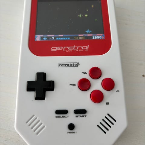 håndholdt spil enhed med medfølgende spil kort. Enheden har en digital skærm og knapkontroller. Spilkortene indeholder forskellige spil og karakterer, som kan bruges med enheden. Produktet leveres i original emballage med beskyttende indlæg.