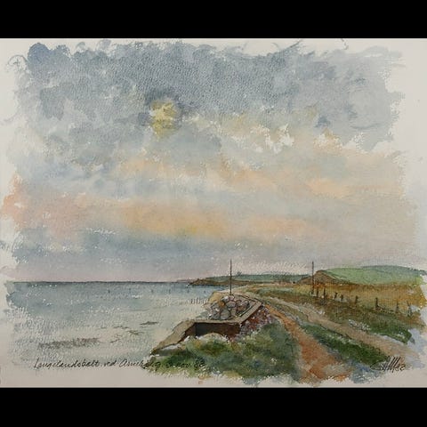 Tegning af Langelandsbælt ved Tiselholt 09-09-1983 malet af Hans Mandøe