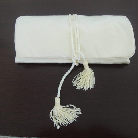 Pung, til kosmetik, smykker, penge. Fra Thailand, NY. Blåt stof med mønster. 7,5 x 7 x 3cm. Vejer 55g.