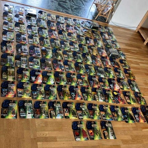 Kompler samling af 3 figur POTF figurer fra 90’erne og to fede playsets fra Star Wars Hasbro. Uåbnede