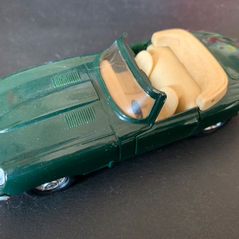 Jaguar E-type i plastik lavet af MARS fra Hong Kong. Modellen har nr. 6018 og har batteridrevet fjernbetjening. Sjov bil med fører samt bagage i bagruden. Bilen er 19 cm. lang. Den er lavet i plastik.