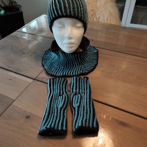 Sæt, Hue og vanter , Soft Gallery, str. One size, Sort med sølv/guld, Uld/akryl og polyester indeni vanter, Ubrugt, Samlet nypris 800,-