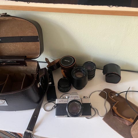 Minolta srT / minolta SRT/ minolta super / Retro kamera / filmkamera / analog kamera / bælgkamera / gammelt kamera / fototilbehør / kameratilbehør / optik / optic / lens / 35mm film / SLR camera / SLR kamera / slr / zoom objektiv / teleobjektiv / portrætobjektiv / 1.4 / 1,4