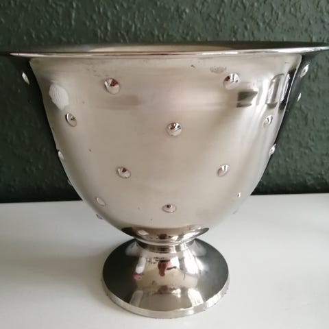 Sælges Sølvfarvet Urtepotte. H 13.5 cm. Ø 11 cm.