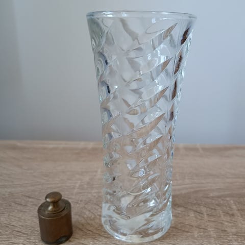 (Drimmer creation) Helt anderledes og speciel -humoristisk og fantastisk design ,en vissen "buket" i en glasskål med urent vand. Skålen er 12 cm høj og hele opsatsen omkring 30 cm høj. Skålen måler 94 cm i omkreds. Blomsterne er ikke af glas.