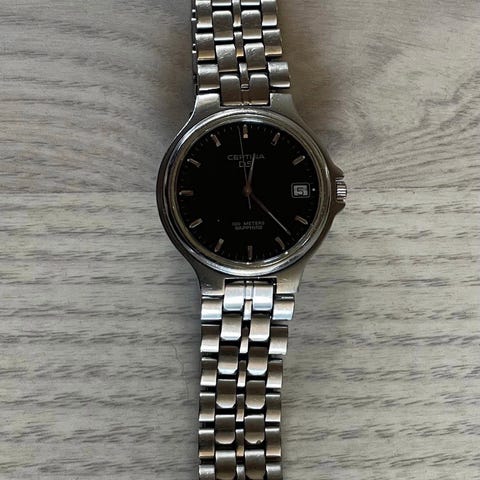 Certina DS sapphire 100 meters ur , arvestykke skal have nyt batteri, lænkens lukke er istykker.