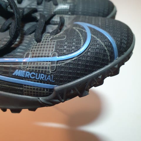 Super gode røde Adidas Nemesis fodboldstøvler til børn. Støvlerne har snørelukning og sål med knopper til græsbaner. Materialet er syntetisk med tekstur på overfladen for bedre boldkontrol.