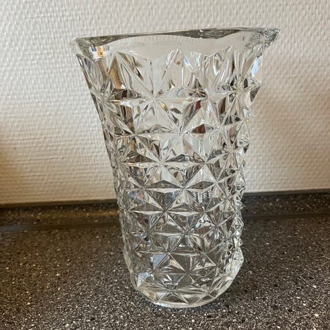 Smuk, håndblæst glasflaske i grønligt glas med hank. Perfekt som dekorationsflaske, vase, pynt eller til opbevaring. I fin stand uden skår.