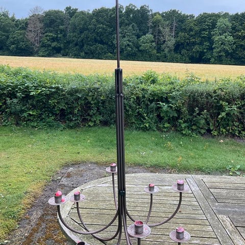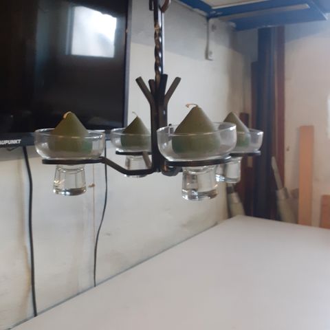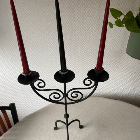 Der er plads til 12 lys. Er meget smuk og smedejernet er flot forarbejdet. Kan også pyntes med glaskugler til jul.